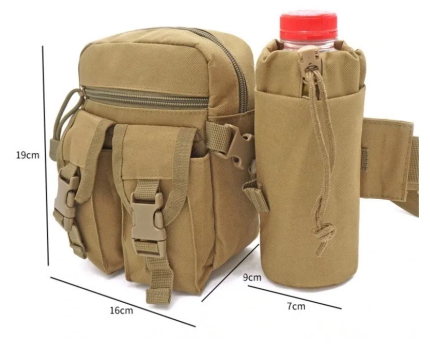 Estructura: 2 bolsillos de hebilla frontal, un bolsillo tipo parche con cremallera, una bolsa de soporte para botella de agua. Se puede utilizar para almacenar de forma segura su cartera, teléfono móvil, varios tipos de tarjetas, botella de agua, linterna LED y otras necesidades al aire libre.